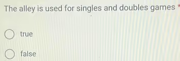 The statement “The alley is used for singles and doubles games” is incorrect based on the rules of common racket sports such as tennis or badminton, where alleys are a feature of the court. The use of the alley is one of the primary rule distinctions between the two formats of play.