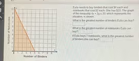 - If Eula buys 7 notebooks, what is the greatest number of binders she can buy? 1