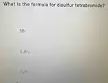 This chemical name provides all the information needed to write its formula by following the standard nomenclature rules for binary covalent compounds. These are compounds formed between two nonmetal elements, which in this case are sulfur (S) and bromine (Br).