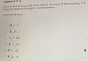 Based on the mathematical principles governing right triangles, the correct choices from the options that are clearly visible are B (√3 / 2), E (√7 / 3), and F (√8 / 3).
