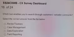 Data Exploration is the most appropriate tool for searching through customers’ verbatim comments within a Customer Experience (CX) survey dashboard. This feature is specifically designed to allow users to perform deep-dive analyses into unstructured data, such as the open-ended text feedback provided by customers. Unlike high-level reports that show aggregated scores like Net Promoter Score (NPS) or Customer Satisfaction (CSAT), a data exploration tool provides an interactive interface for discovery.