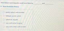 Wind-blown sand deposits, also known as eolian deposits, are characterized by their distinct textural properties which result from the nature of wind as a transport agent. These properties are sorting and rounding.