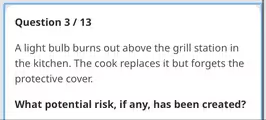 The potential risk is the physical contamination of food. If the unprotected light bulb shatters, glass fragments could fall into the food on the grill station, making it unsafe to eat.