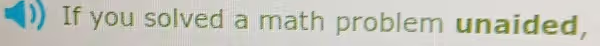 The provided text is a conditional clause: “If you solved a math problem unaided,”. This phrase establishes a specific scenario, likely as a lead in to a subsequent question or a statement about the significance of such an accomplishment. The central focus of the phrase is the word “unaided,” which is visually highlighted in a different color to underscore its importance. To solve a problem unaided means to reach the correct answer by relying exclusively on one’s own knowledge, critical thinking, and reasoning abilities. This definition inherently excludes any form of external assistance, such as using a calculator, consulting a textbook or online resources, employing a photo math application, or seeking guidance from a teacher, parent, or peer.