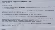 The notice uses several high pressure sales tactics to create a sense of fear and urgency. It includes phrases like “RESPONSE TO THIS NOTICE REQUESTED,” “our final attempt,” and “respond immediately.” It warns that failing to call could result in being “liable for all costs associated with any home repairs.” This language is designed to scare the homeowner into calling the provided phone number, 1-877-499-4406, without careful consideration.