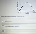 Given the graph and the accompanying choices, the most fitting answer is general arousal curve. The other options, homeostasis and motivation of arousal, are less directly linked to this particular graph, which focuses specifically on how arousal affects performance rather than general biological or motivational states.