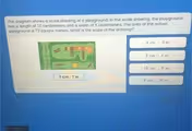 After simplifying, we get the new ratio of 1 cm : 6 m. This is the final scale of the drawing. It clearly states that every 1 centimeter of length on the paper represents 6 meters of length in the actual playground. This result matches one of the provided options.