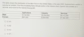 The table shows the distribution of the labor force in the United States in the year 2000.
