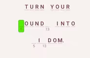 The first part of the puzzle gives us the words “TURN YOUR” followed by a word that is partially obscured. We see a green block covering the first letter, followed by “OUND INTO”. The most logical word to fit this context, forming the beginning of a familiar saying, is “WOUND”. The green block is hiding the letter ‘W’, making the full line “TURN YOUR WOUND INTO”.