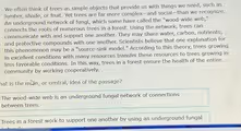 The first answer choice, “The wood-wide web is an underground fungal network of connections between trees,” is a correct statement of fact presented in the passage. However, it is a supporting detail, not the main idea. It describes the mechanism, the “how,” but misses the larger point of the passage, which is the “what” and “why.” The existence of the network is the foundation, but the central theme is the cooperative behavior it enables.
