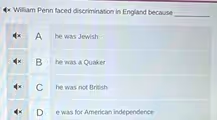 × William Penn faced discrimination in England because
