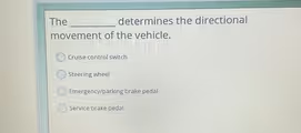 - Cruise control switch: This system is used to maintain a constant speed set by the driver without needing to use the accelerator pedal. It controls speed, not direction.