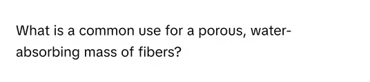 A common use for a porous, water-absorbing mass of fibers is as a sponge for cleaning or bathing. The description in the question perfectly outlines the essential characteristics that make a sponge effective for these tasks.