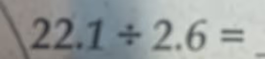 The mathematical problem presented in the image is a division of two decimal numbers: 22.1 divided by 2.6. To solve this, the most straightforward method is to convert the division problem into one involving whole numbers, which simplifies the calculation significantly.