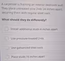 The correct answer is: Place studs 16 inches apart.