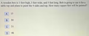 Therefore, Bob will paint a total of 31 square feet. This corresponds to option C.