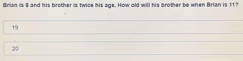 The question asks for the brother’s age when Brian is 11. Since the brother is always 8 years older, we can simply add this constant age difference to Brian’s future age.