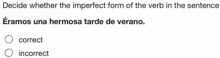 The use of the imperfect verb form “Éramos” in the sentence “Éramos una hermosa tarde de verano” is incorrect. This sentence literally translates to “We were a beautiful summer afternoon.” The core issue is a grammatical disagreement between the subject of the verb and the description that follows.