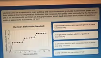 First, there are the segments where Martina’s speed is increasing. options are incorrect. It is not made of linear functions only, as this ignores the distinct nature of the constant speed intervals These occur during the time intervals of 0 to 1 minute, 5 to 6 minutes, and 10 to