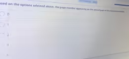 The image provided shows a blurry question from a quiz or software test, likely related to a word processing program like Microsoft Word. The visible portion of the question reads, “Based on the options selected above, the page number appearing on the second page of the document is…”. The answer choices are numerical, including 0, 1, and 2.