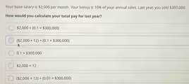2,000permonth.Sincethereare12monthsinayear,youneedtomultiplythemonthlysalaryby12.Thispartofthecalculationisrepresentedbytheexpression(2,000permonth.Sincethereare12monthsinayear,youneedtomultiplythemonthlysalaryby12.Thispartofthecalculationisrepresentedbytheexpression(