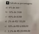 a) 6% de 300: Convertemos 6% para 0,06. O cálculo é 0,06 multiplicado por 300, que resulta em 18.
