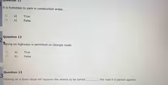 - Question 1.2: False. Racing on highways is not permitted on Georgia roads, or any public roads.