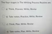 The writing process is a structured approach that helps writers produce clear, coherent, and effective texts. Breaking the task into distinct stages makes it less overwhelming and leads to a more polished final product. The four stages listed in option (c) accurately represent the fundamental steps of this routine.