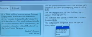 The question asks to identify which text, the biography or the editorial, presents an opinion about the topic of immigration. Based on the fundamental definitions of these two genres, the most accurate answer is the editorial.