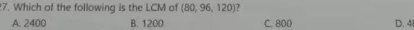 Another way to solve this, given the multiple-choice format, is to check the options starting from the smallest. The correct answer must be divisible by 80, 96, and 120.