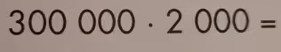 The problem shown in the image is the multiplication of 300,000 by 2,000. The correct answer is 600,000,000, which is six hundred million.