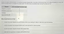 The correct answer is: Tell the requester the proposed timeline won’t work and ask for a later due date.