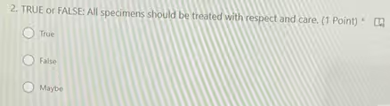 The statement that all specimens should be treated with respect and care is unequivocally true. This principle is a cornerstone of professional conduct in scientific, medical, and educational fields for a combination of practical, ethical, and safety reasons.