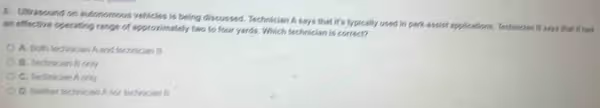 Both technicians provide accurate information regarding the use of ultrasonic sensors in vehicles, particularly in the context of autonomous and driver-assist systems.