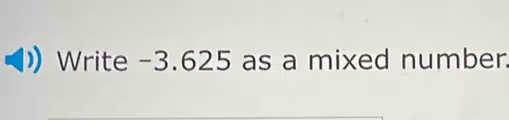 Thus, -3.625 written as a mixed number is -3 5/8.