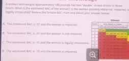 The correct answer is A. The estimated BAC is .07 and the woman is impaired.