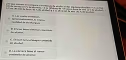 De qué manera se compara el contenido de alcohol de las siguientes bebidas