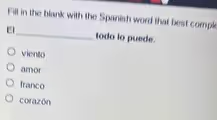 - Corazón means “heart.” “El corazón todo lo puede” (“The heart can do everything”) is a plausible and poetic phrase, as the heart is often seen as the seat of courage and emotion. However, the established proverb specifically uses the word “amor” to refer to the abstract concept of love itself as the all powerful entity, making it the most culturally and linguistically appropriate answer.
