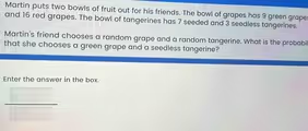 P(green grape and seedless tangerine) = (3/8) × (3/10) = 9/80.