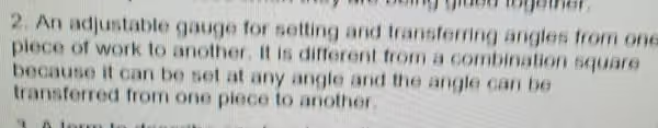 A sliding T-bevel is a specialized hand tool used in woodworking, metalworking, and drafting, designed precisely for the function described in the text: setting and transferring angles. Its simple yet effective design makes it an indispensable instrument for tasks requiring the duplication of non-standard angles where a typical square would be inadequate.