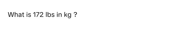 172 lbs × 0.45359237 kg/lb = 78.01788764 kg