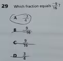 Based on a mathematical evaluation of the provided options, none of them are equivalent to the fraction -9/16. A fraction is considered equal to another if they represent the same numerical value. We can analyze each choice to demonstrate why it is not the correct answer.