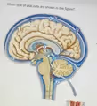 The glial cells prominently illustrated in this sagittal view of the brain are ependymal cells. This identification is based on their specific location and implied function as depicted in the diagram. Ependymal cells are a type of neuroglia, or glial cell, that form a simple cuboidal epithelial-like lining called the ependyma. This lining covers the inner surfaces of the brain’s ventricles, which are the fluid filled cavities, and the central canal of the spinal cord. In the figure, these cells are shown lining the large, interconnected spaces within the brain that are colored blue, representing the presence of cerebrospinal fluid (CSF).